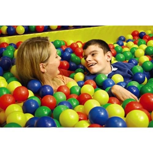 Supplied flat for self-assembly with 100mm thick vinyl covered inner floor mat. Complete with appropriate number of 75mm coloured balls.