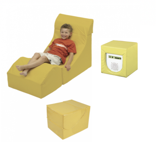 A portable foldaway Softplay chair with built-in vibro-acoustic speakers which relax and calm. Let the deep sound resonance work through your body to help relax. From a compact cube, the chair unfolds easily to create a comfortable lounger which offers full body support.